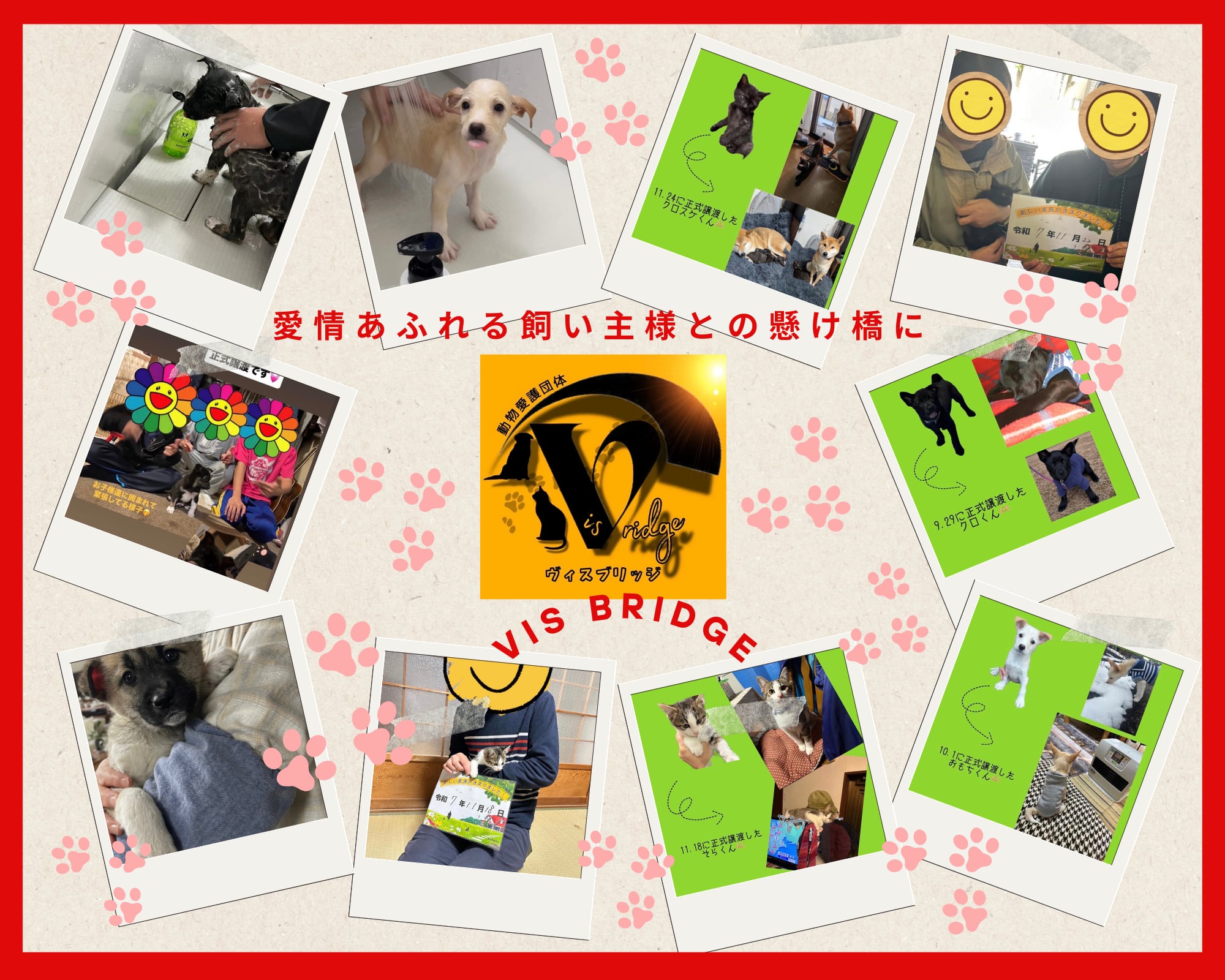 Vis Bridgeでは、香川県にある学生愛護団体ワンニャンピースマイル滋賀県支部として一匹でも多くのワンちゃん、ネコちゃんを愛情あふれる飼い主様につなげていく保護活動に力を入れております。